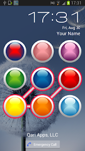 This is a free Android app, which looked promising, but didn't actually lock the device's internal storage.- The Good: Free, random unlock patterns; default matrix points are colours, but these can be upgraded to include sets of numbers, flags etc.; space for Owner Information